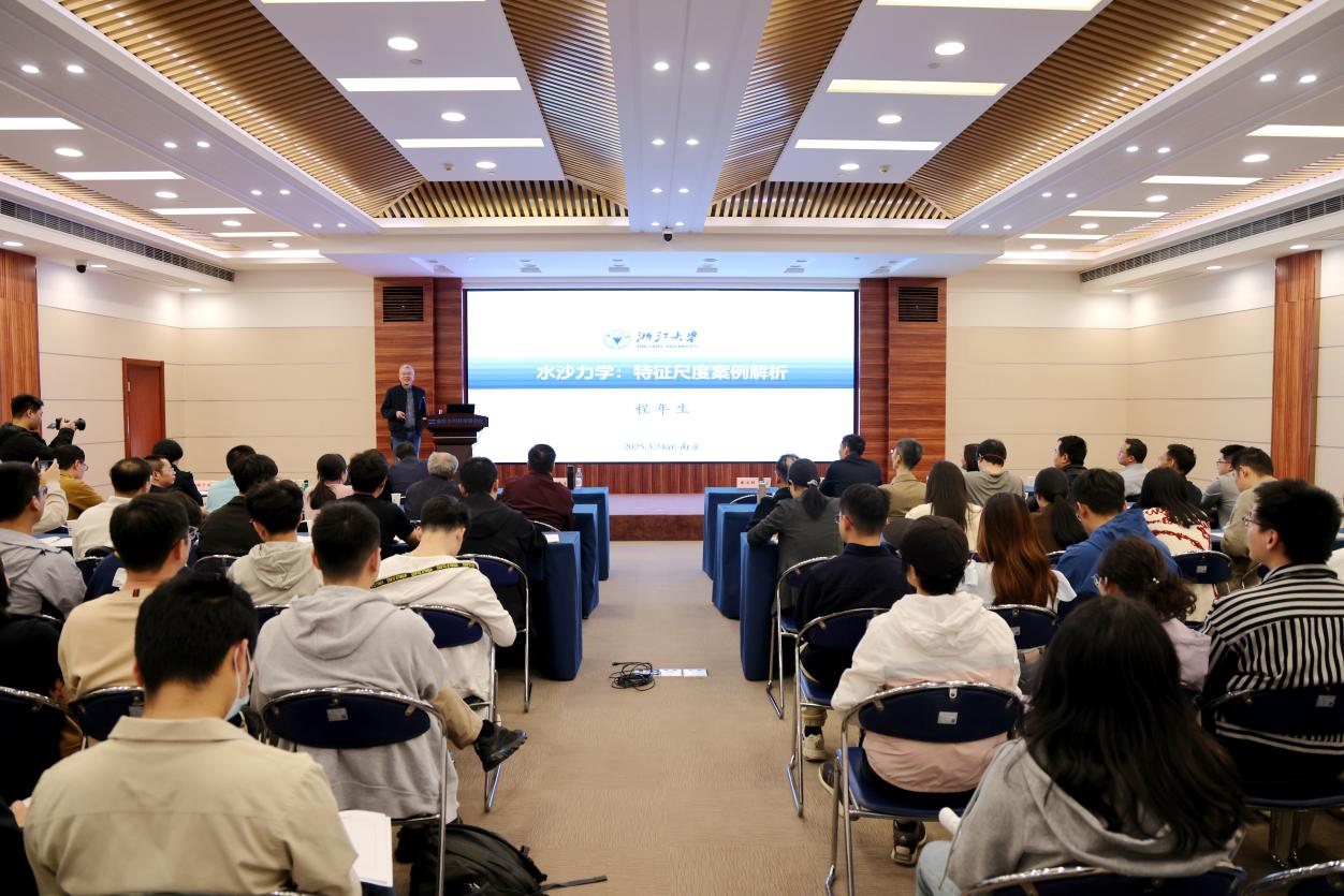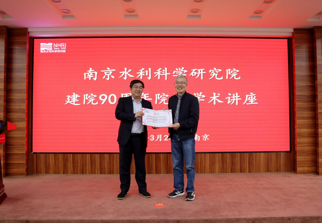 2025年3月24日,浙江大学程年生教授,我院1984级水力学及河流动力学专业杰出院友受邀返院作90周年院友学术报告,并受聘为我院特聘教授。我院院长、党委书记戴济群为程教授颁发了特聘教授证书。副院长潘军宁主持报告会。原副院长吴时强,以及研究生院、研究所相关负责人、科研骨干、科技开发人员和研究生共110余人参加了讲座。
