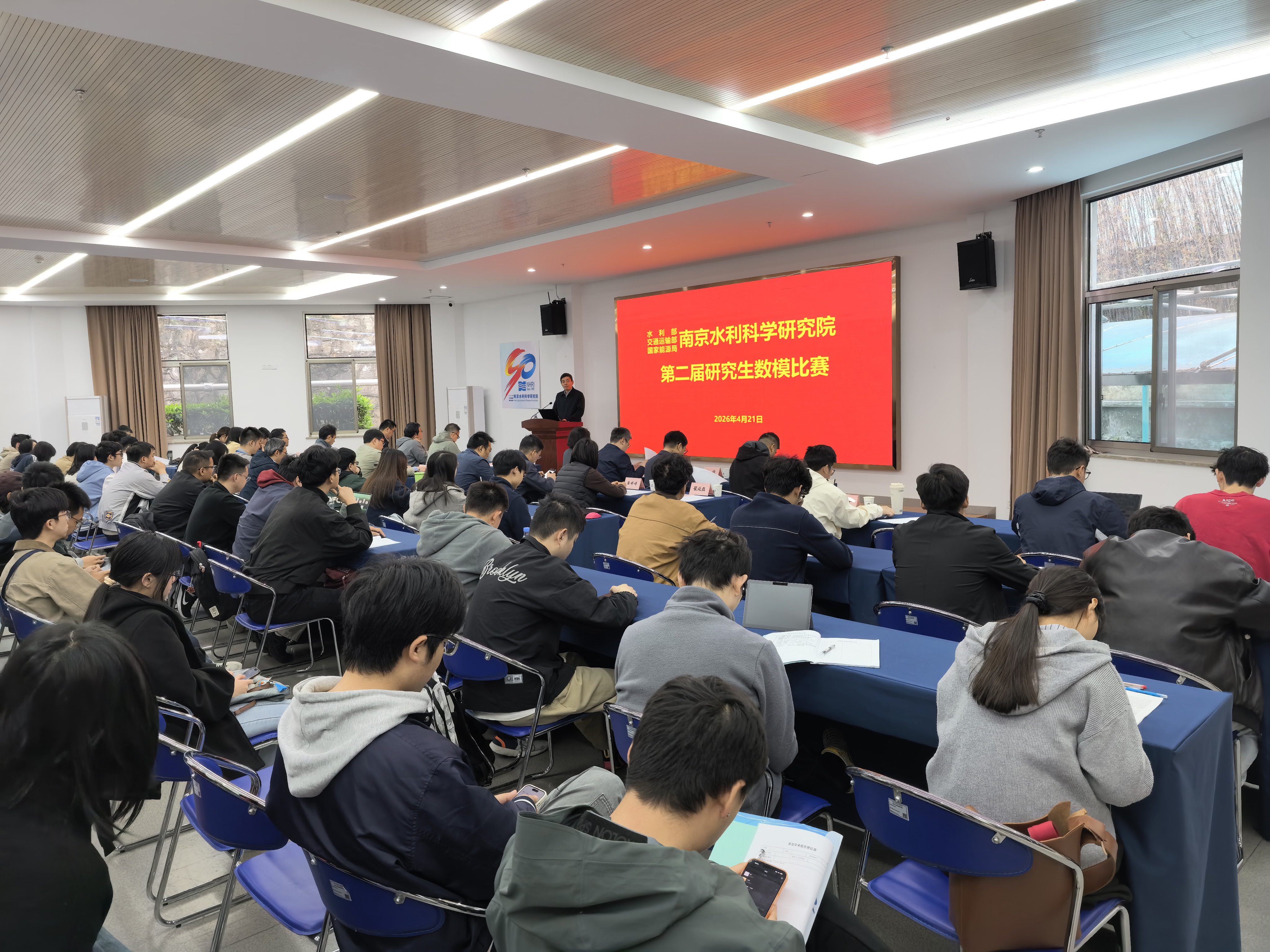 2026年4月21日,水利部、交通运输部、国家能源局南京水利科学研究院(以下简称“南科院”)第二届研究生数模比赛开赛大会顺利举行。本次大会由南科院研究生院主办、IAHR南科院青年分会(IAHR-NHRI-YPN)协办,南科院副院长、研究生院院长潘军宁出席会议,各培养部门负责人及研究生院全体工作人员、全院200余名参赛研究生参会,现场氛围热烈有序,充分展现了南科院研究生投身科研、奋勇争先的良好风貌。