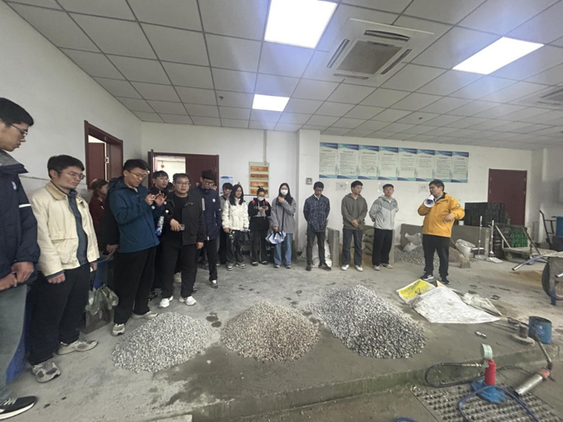 上午,同学们来到位于安徽瑞和新材料有限公司内的水利部水工新材料工程技术研究中心。在工作人员的带领下,参观了工程材料基础研究、耐久性研究、腐蚀与防护研究等多个实验室,学习了球磨机、混凝土冻融试验机、混凝土温度-应力实验机等重要仪器的工作原理。在生产区域,工作人员讲解了水工新材料从研发、制备、生产、运输的全部流程,同学们对科技成果转化,并进一步实现产业化和规模化有了直观清晰地认识。