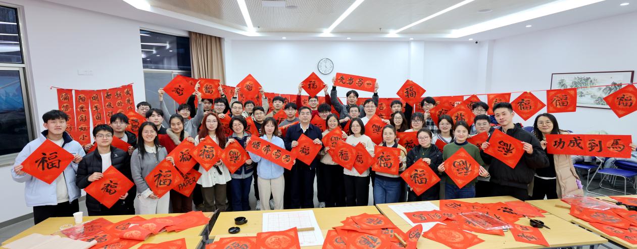 活动现场热闹祥和,同学们满怀热忱、各展其才,自编自写春联寄情抒怀。“一马当先逐梦远,勤学笃行展宏图”“实验模拟步步顺,文章专利篇篇高”“学术爱情两手抓,国奖论文齐开花”等原创联语跃然纸上,大家交流笔法、分享灵感,欢声笑语间,尽显对传统文化的热爱与科研学习的向往。
