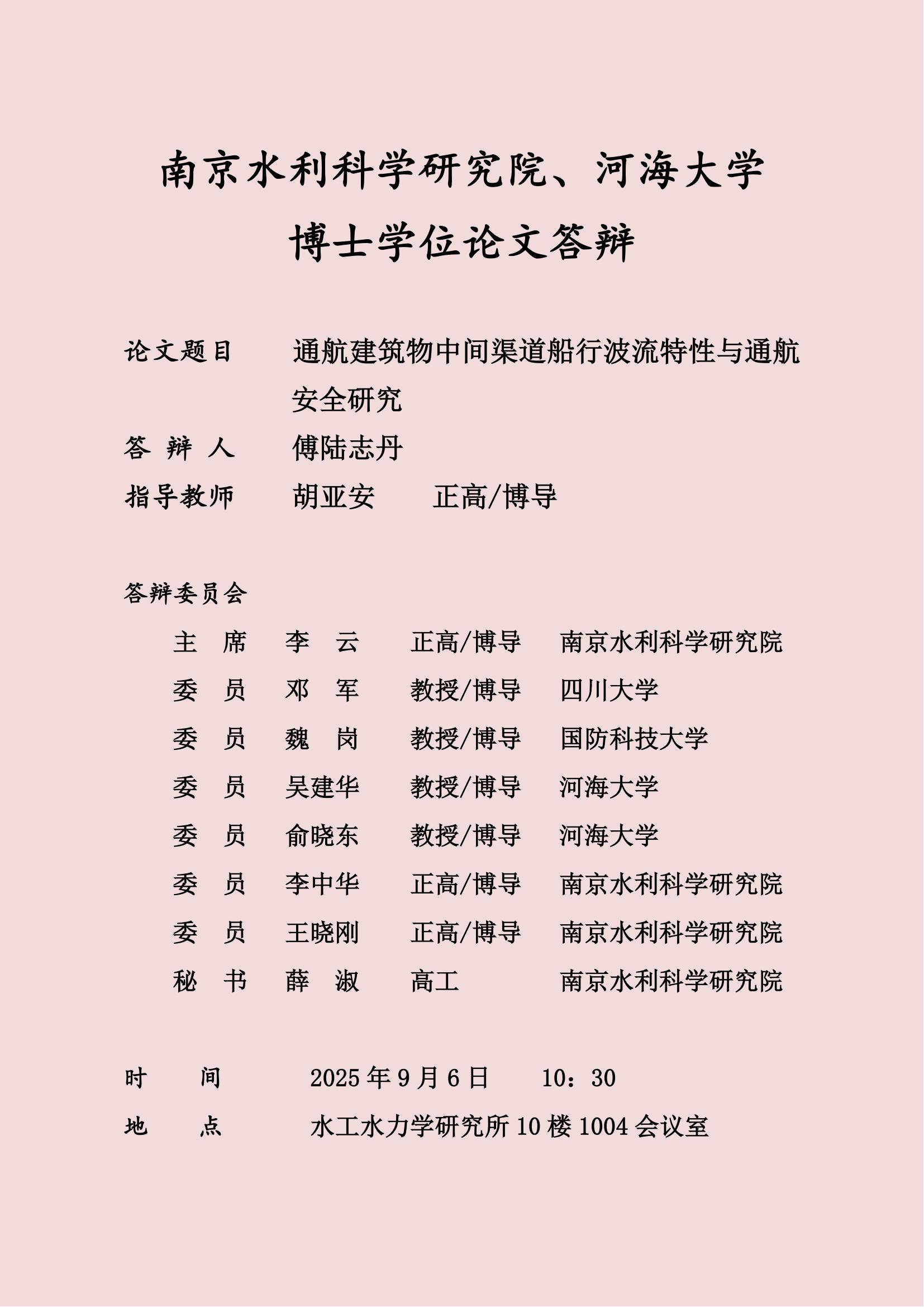 傅陆志丹博士研究生学位论文答辩:通航建筑物中间渠道船行波流特性与通航安全研究