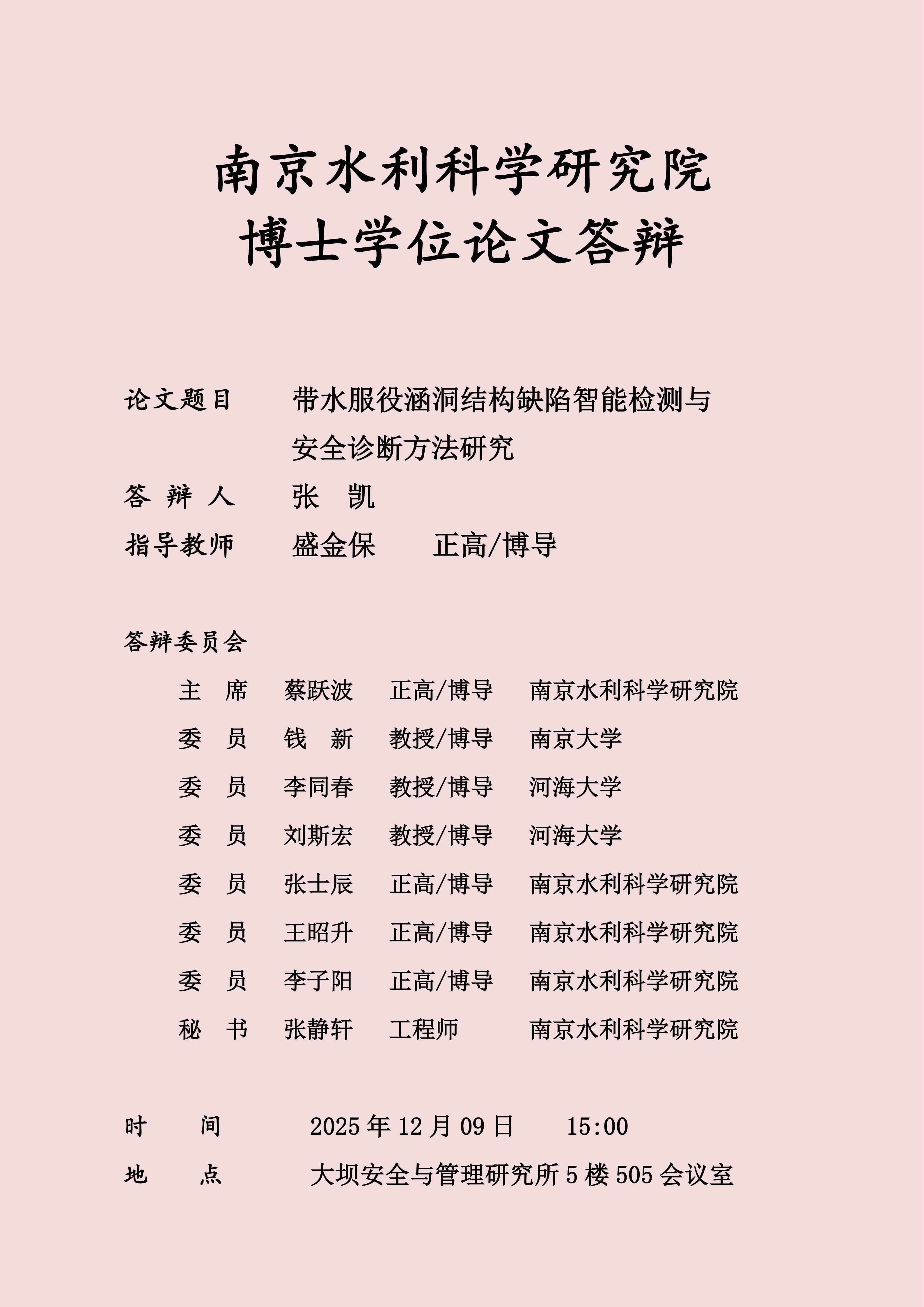 张凯博士研究生学位论文答辩:带水服役涵洞结构缺陷智能检测与安全诊断方法研究