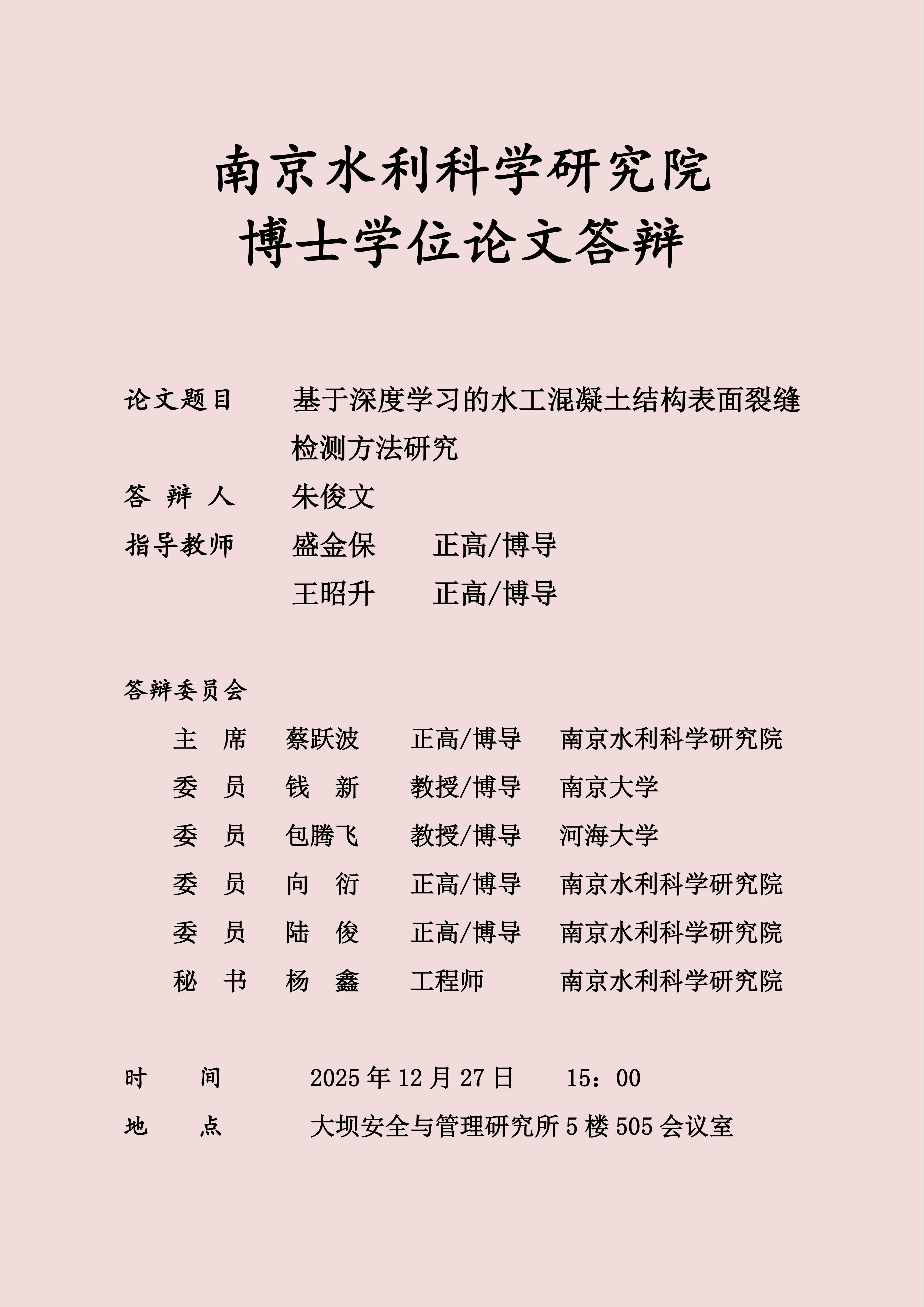 朱俊文博士研究生学位论文答辩:基于深度学习的水工混凝土结构表面裂缝检测方法研究