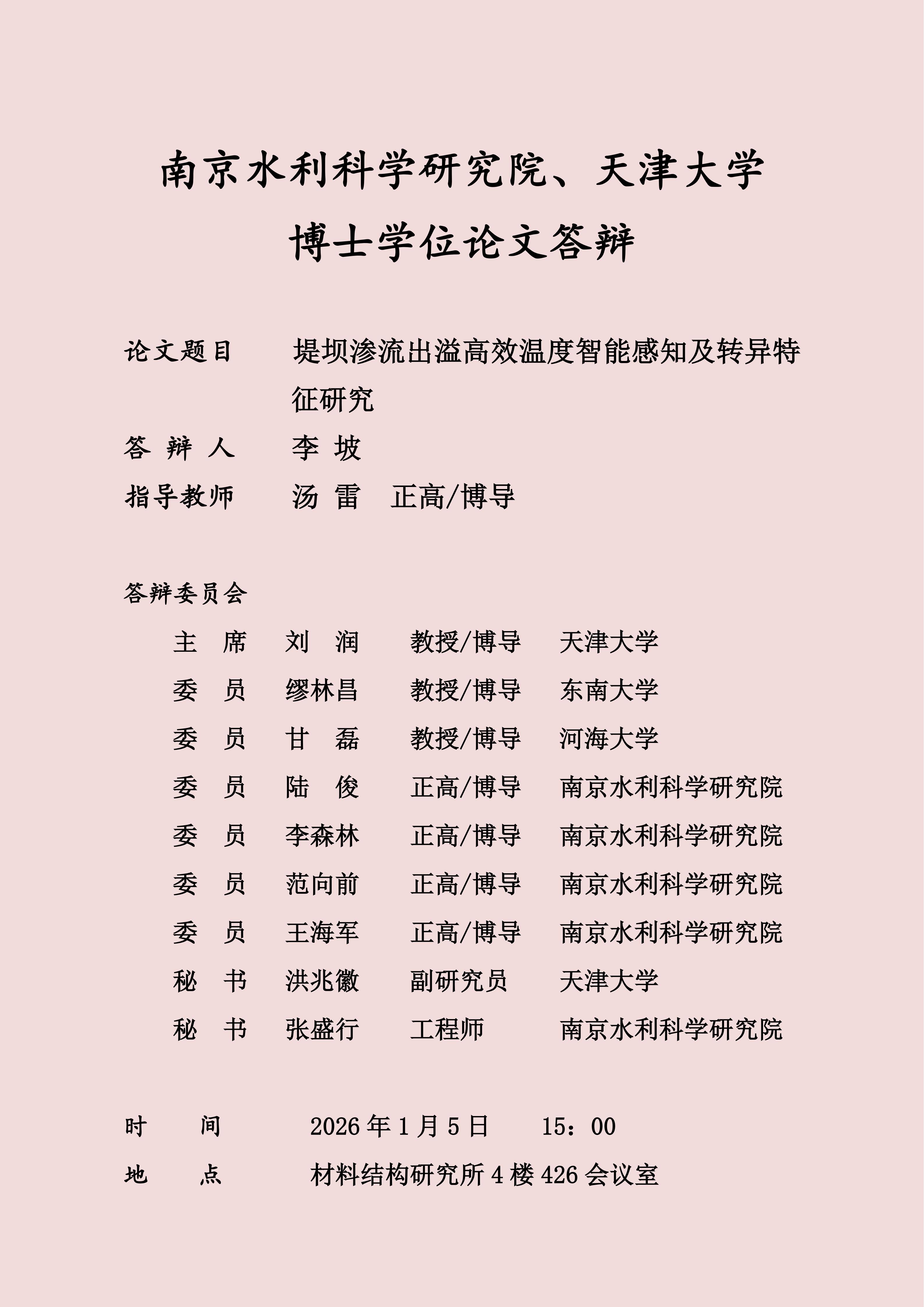 李坡博士研究生学位论文答辩:堤坝渗流出溢高效温度智能感知及转异特征研究