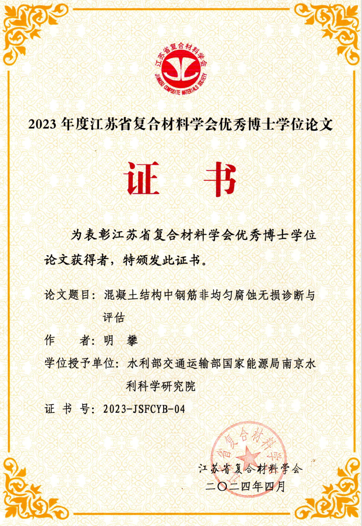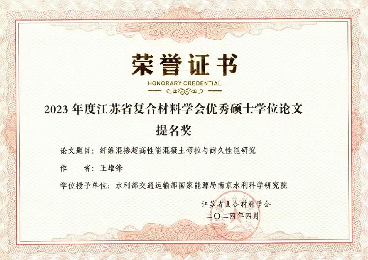 近日,我院2018级博士研究生明攀、2020级硕士研究生王雄锋分别获得2023年度江苏省复合材料学会优秀博士学位论文奖、优秀硕士学位论文提名奖。