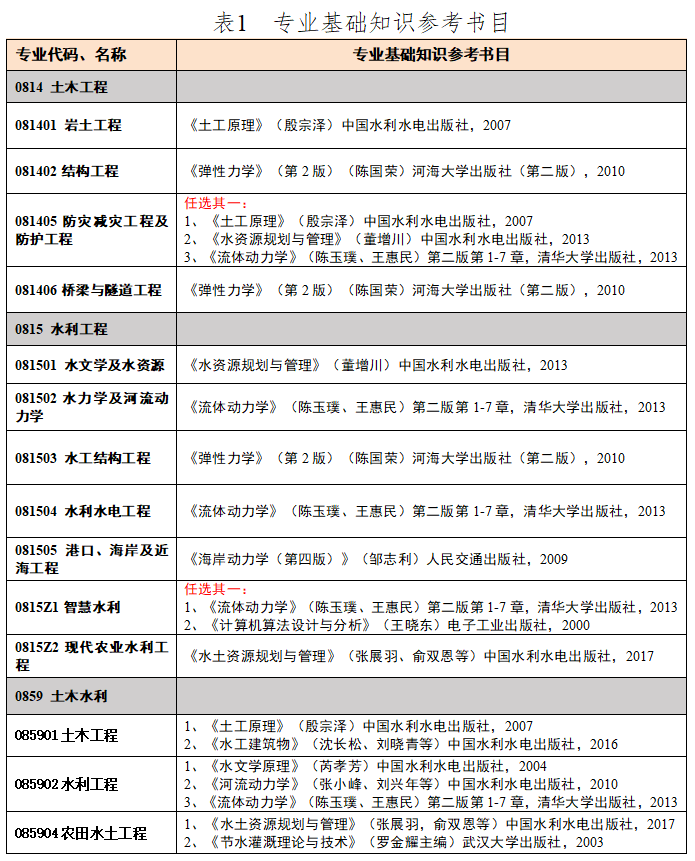1. 综合知识考核为笔试,满分100分。考核申请者的专业基础知识掌握程度,参考书目见表1,成绩须达到我院划定的合格线。